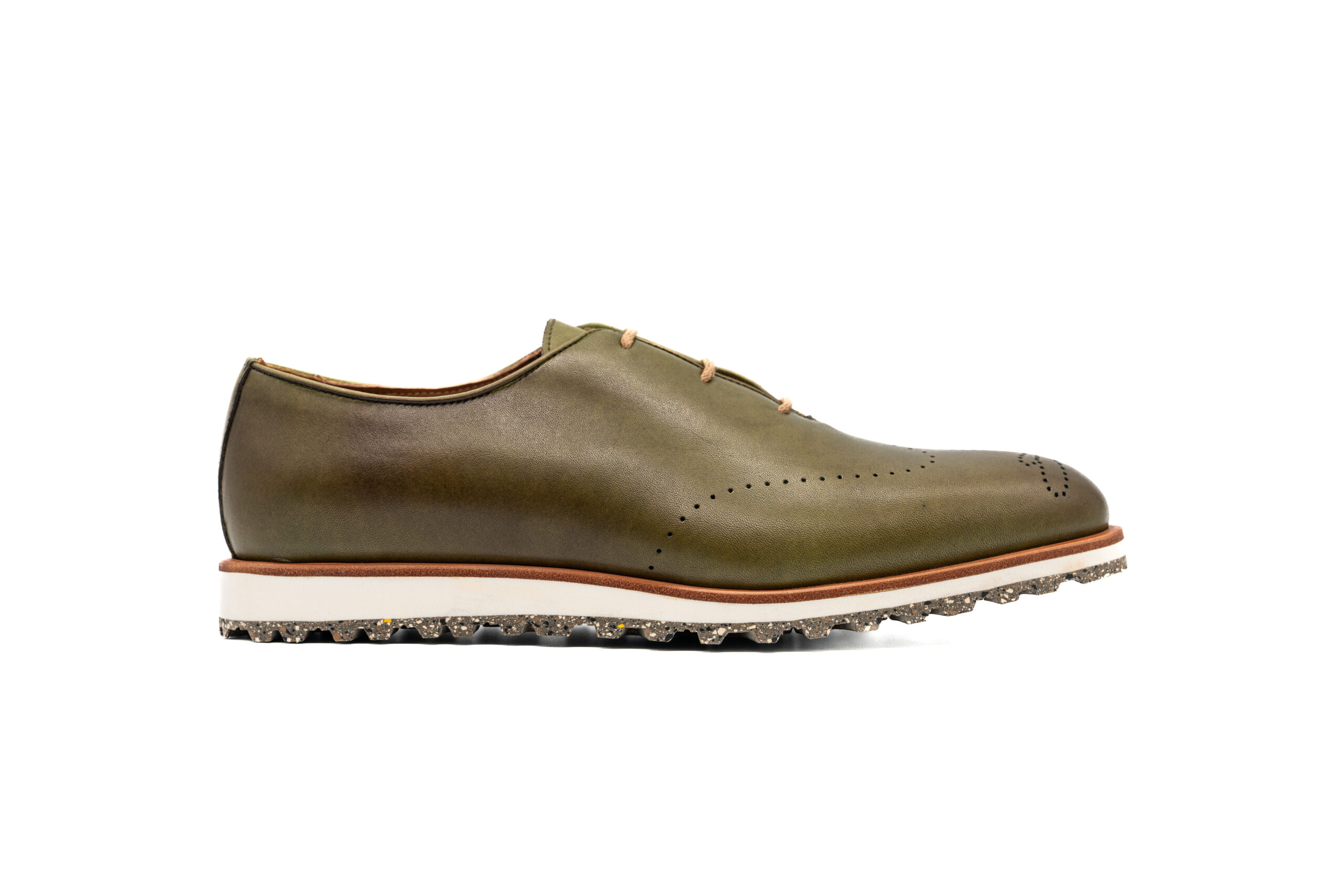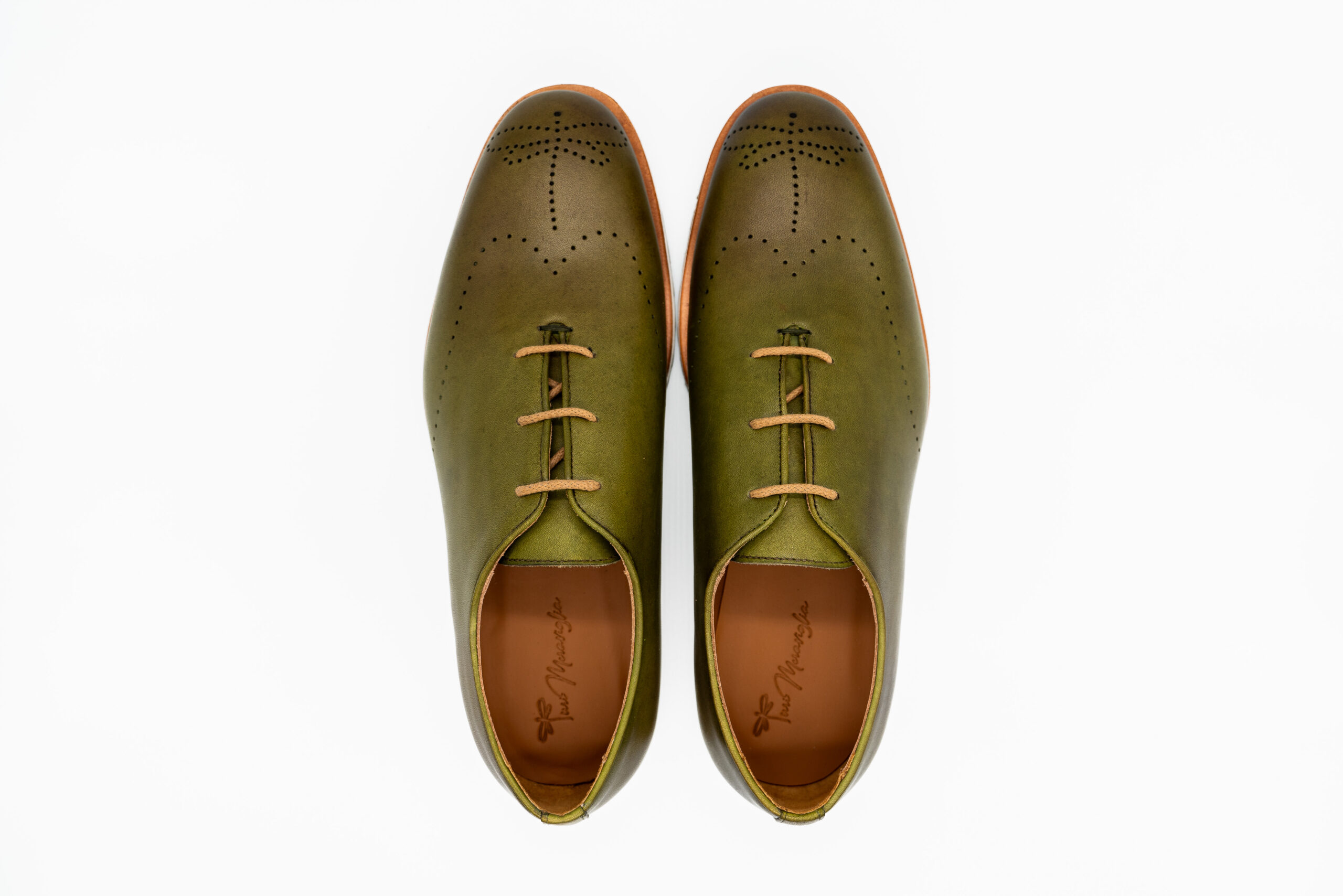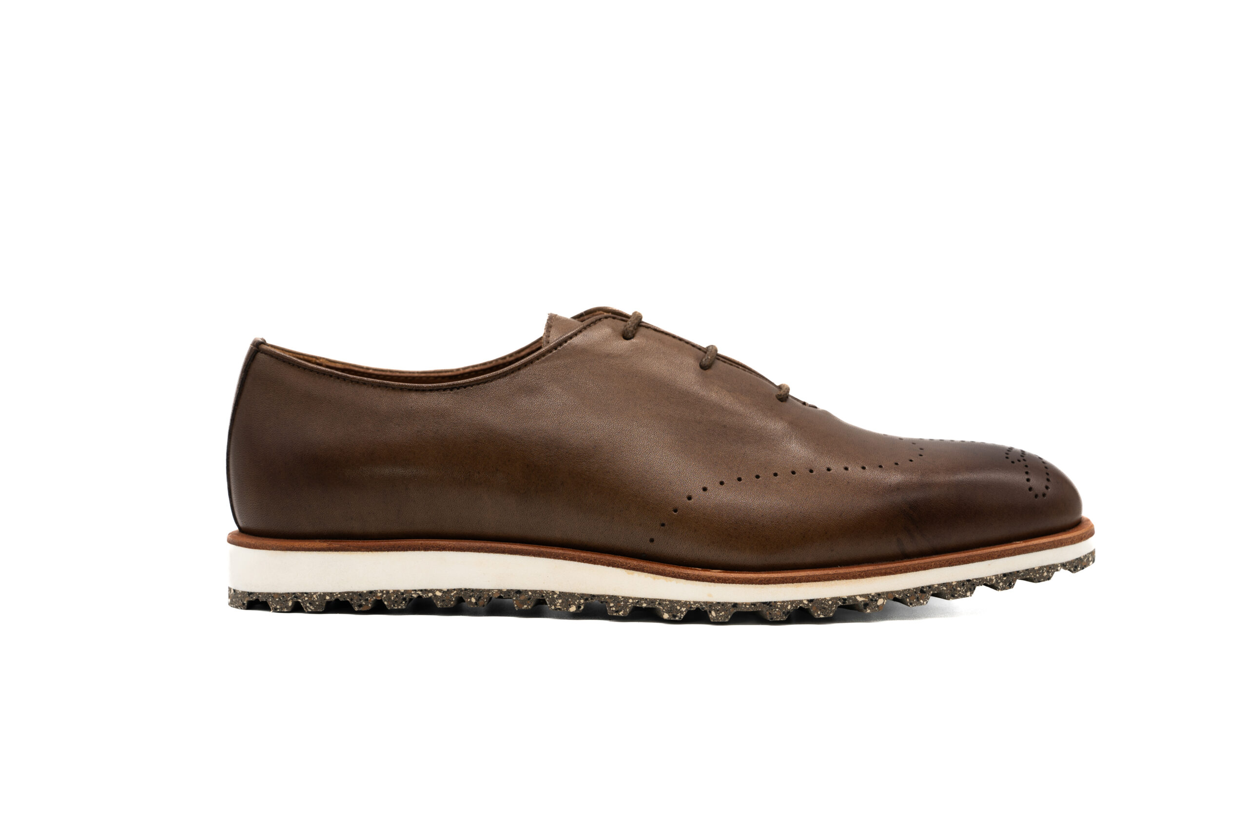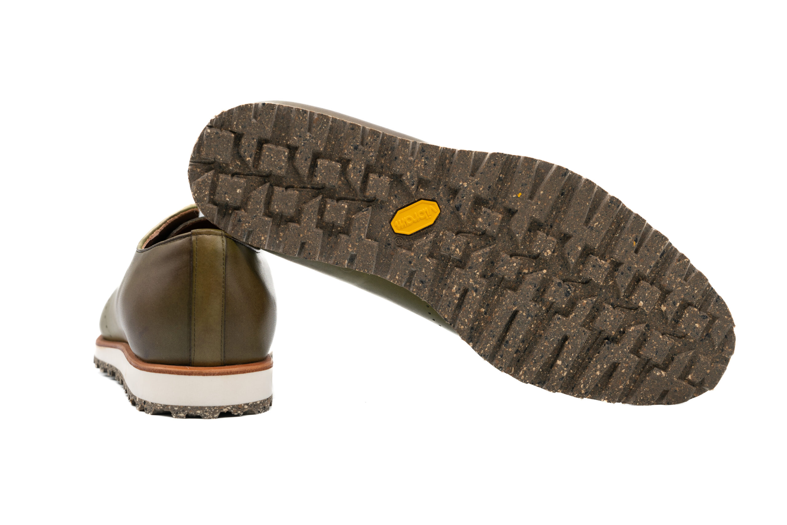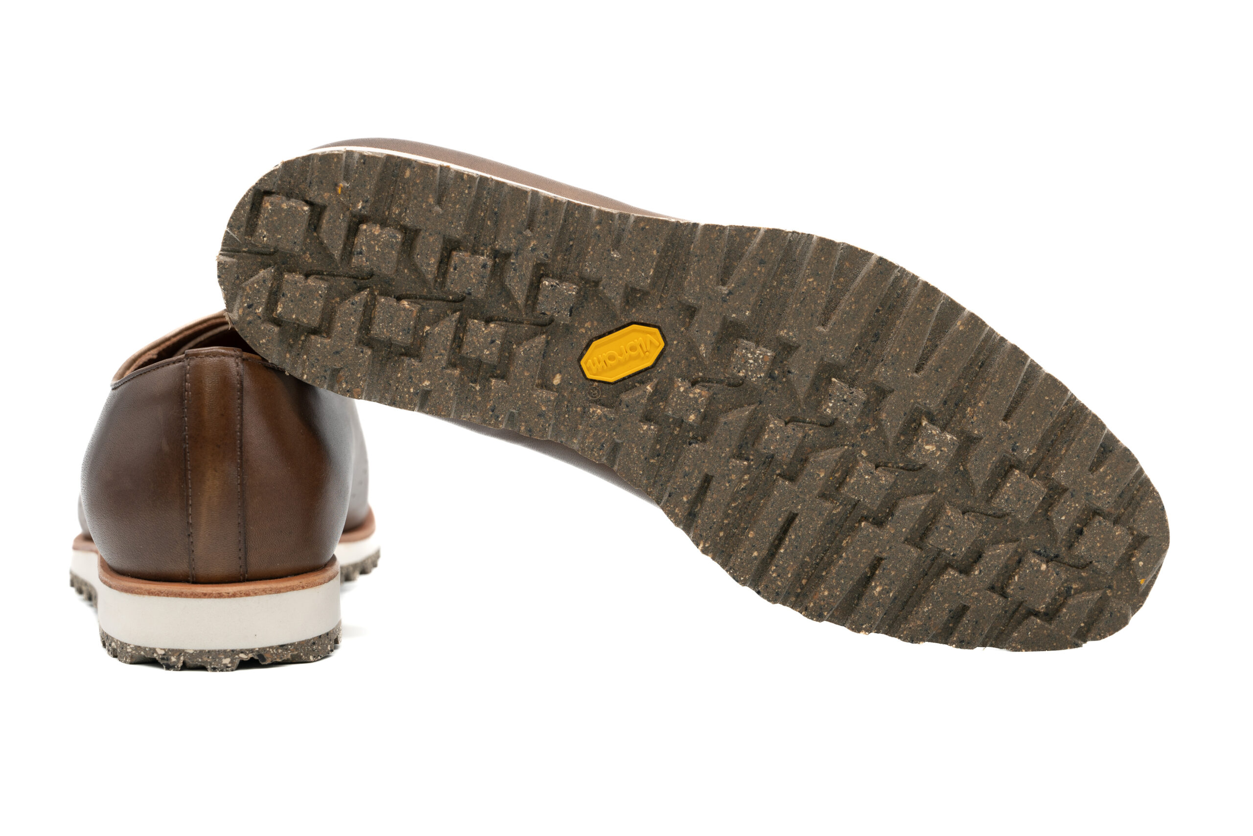 Stringata a 3 fori, in pelle tamponata a mano con lavorazione brogue. Connubio perfetto tra estetica e comfort, è ideata per coloro che non intendono mai rinunciare allo stile. La lavorazione brogue è sinonimo di ricercatezza ed eleganza, mentre il fondo Vibram in gomma riciclata la rende una scarpa facile capace di adattarsi a diversi terreni e condizioni di utilizzo.